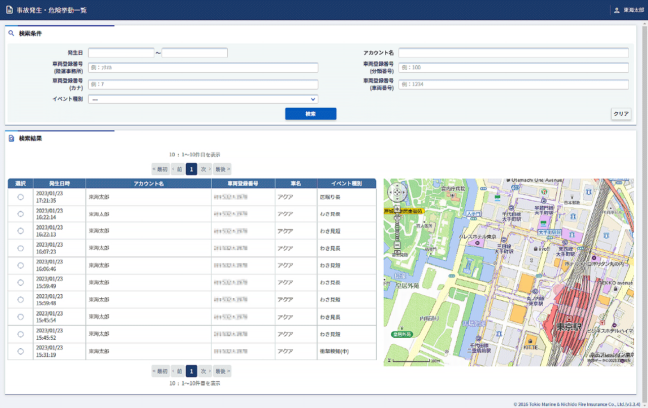 事故発生・危険挙動一覧画面を表示する
