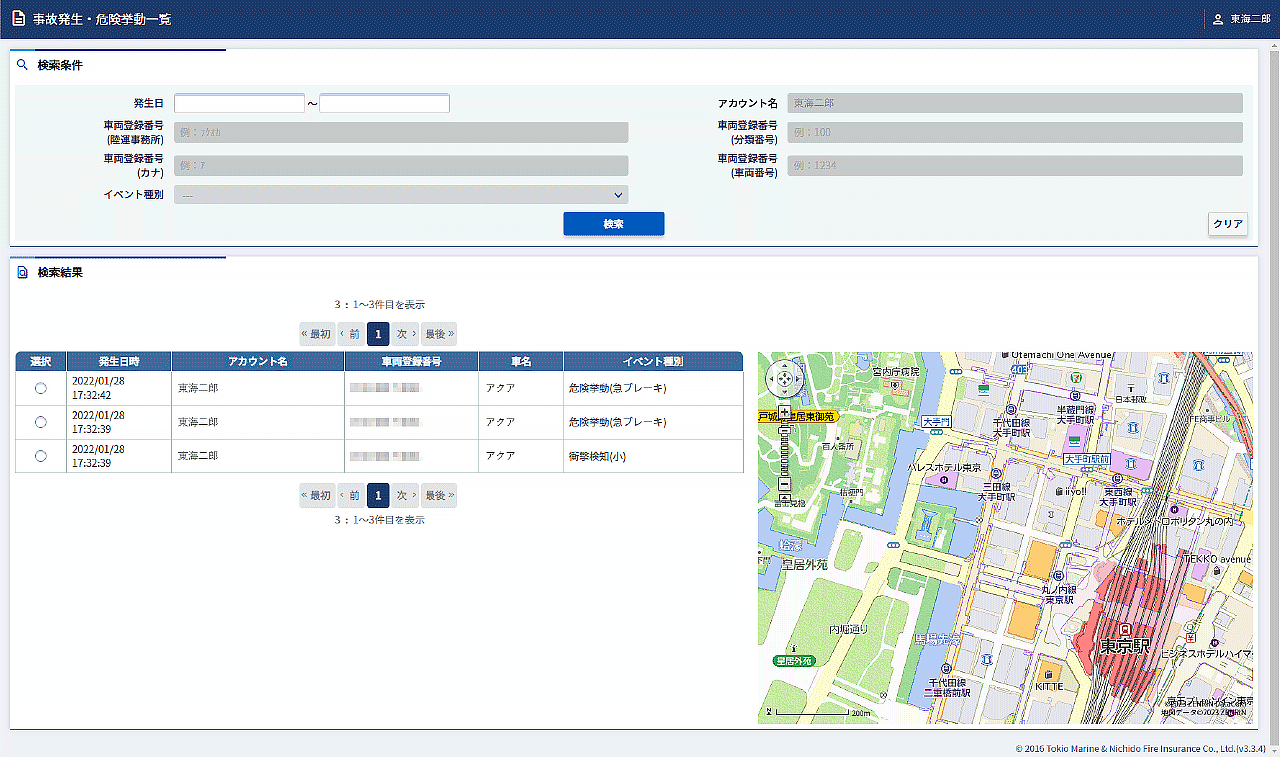 事故発生・危険挙動一覧画面を表示する