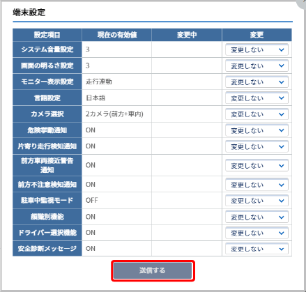 OFF/ON/変更しない から選択安全診断メッセージ 走行前の安全診断メッセージの通知を設定します。