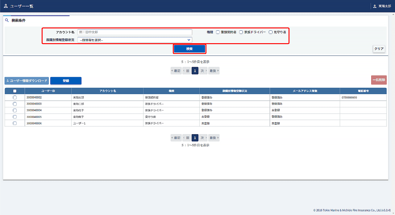 検索条件を入力し、【検索】をクリックして一覧を絞り込みます。