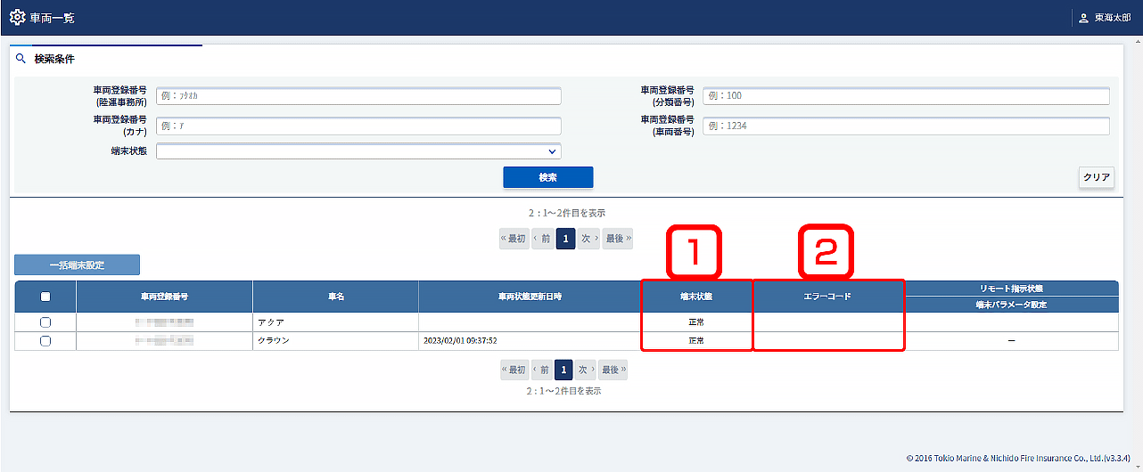 車両一覧画面が表示されます。