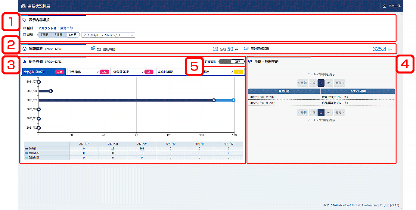 運転情報 家族ドライバーご自身の運転情報を表示