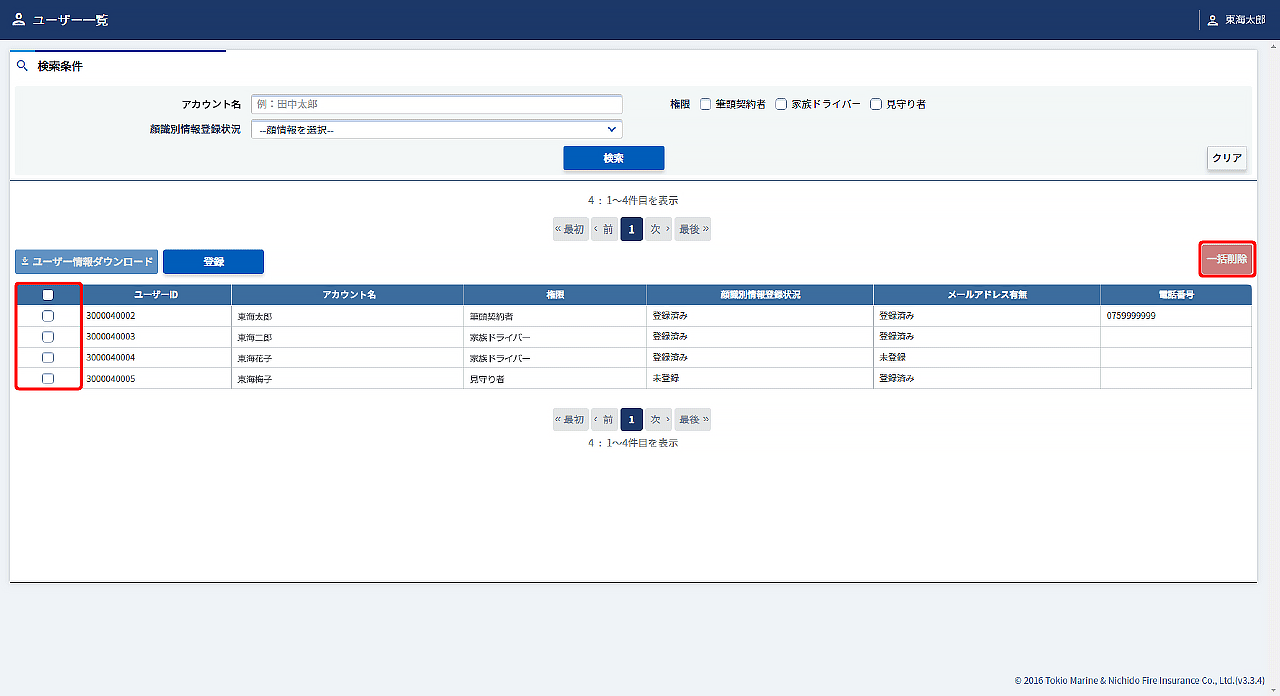ユーザー情報を一括削除することができます。