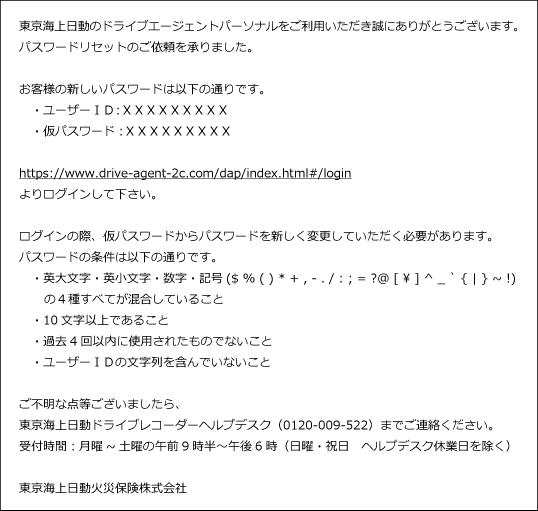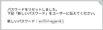 - メールアドレスを登録していないアカウントのパスワードをリセットした場合は、画面に表示されたパスワードをお知らせください。
