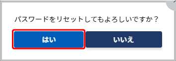 【はい】をクリックすると、新しいパスワードが表示されます。パスワードをリセットしたユーザーにメールアドレスが登録されている場合は、そのメールアドレスに確認メールが送信されます。