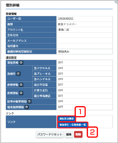 事故発生・危険挙動一覧 事故発生・危険挙動一覧画面を表示(事故発生・危険挙動一覧画面を表示する)